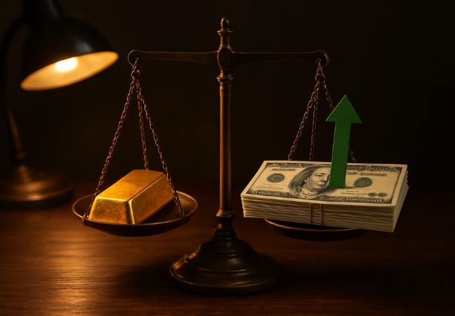 This is the section that many people find confusing. US dollars are used to determine the price of gold worldwide. Anyone who makes money in euros, yen, rupees, or any other currency will find gold more costly as the dollar strengthens. A European central bank, an Indian family office, and a Japanese pension fund all have to pay extra for the same ounce. Thus, they make fewer purchases. Demand declines. The cost decreases.